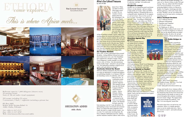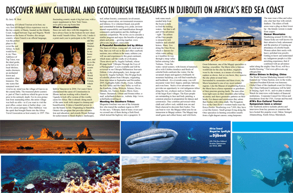 Preview pages from Africa Travel Magazine's Cultural and Ecotourism Edition, appearing in print January 2008. Some spreads are currently ready for download and will be indicated. |