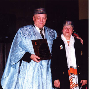 ATA Founders Award pesented to Africa Travel Magazine and Website Publishers, Jerry W. Bird and Muguette Goufrani. Cape Town, 2001